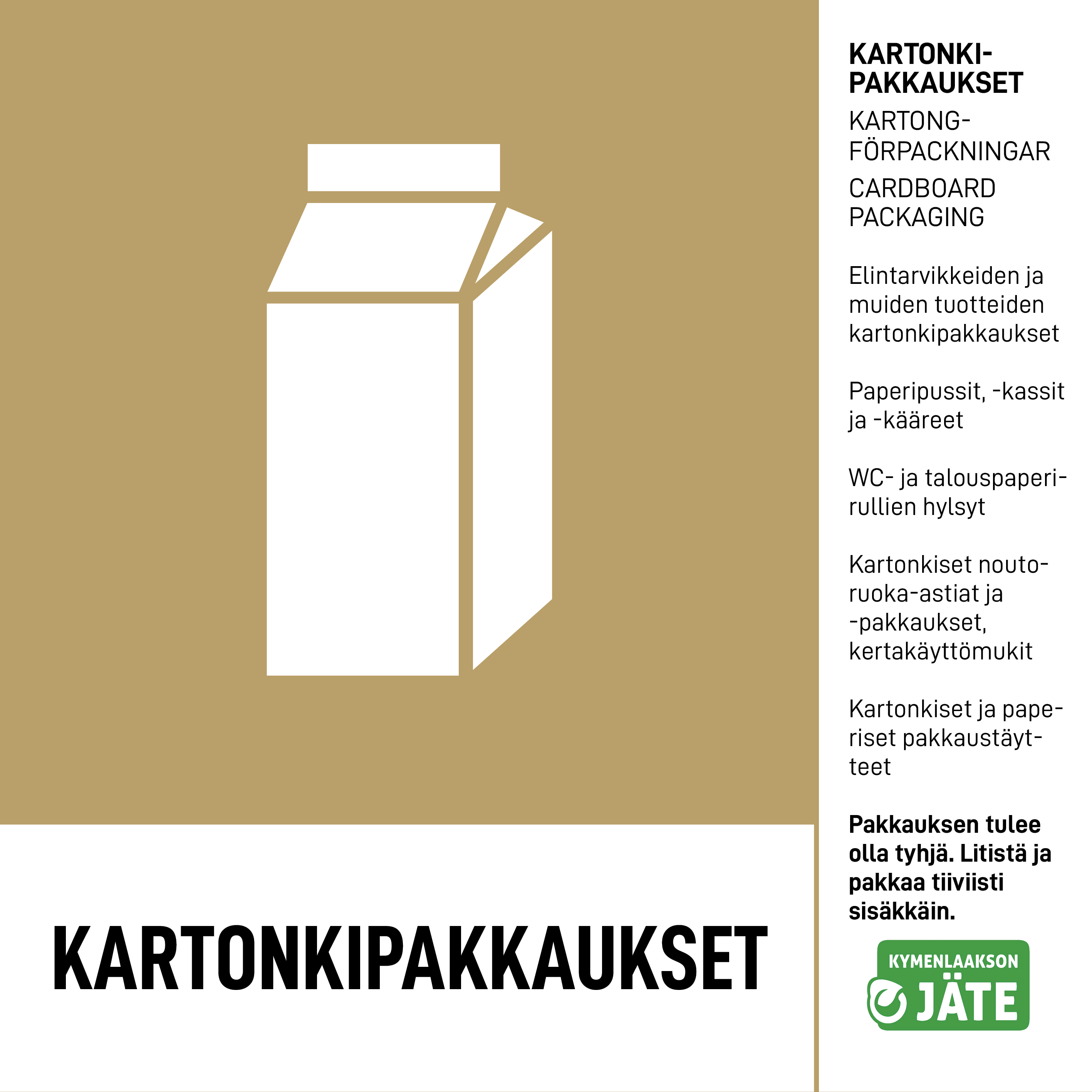 Taloyhtiön jäteastiat tulee merkitä tarroilla, joissa kerrotaan kerättävä jätelaji. Myös omakotitalojen, mökkien ja muiden pientalojen jäteastiat voi merkitä tarralla.