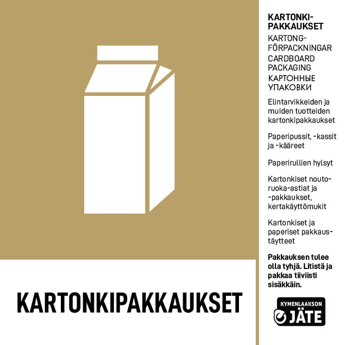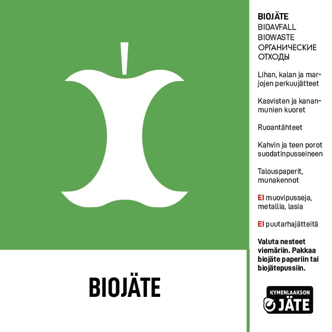 Taloyhtiön jäteastiat tulee merkitä tarroilla, joissa kerrotaan kerättävä jätelaji. Myös omakotitalojen astiat tulee merkitä, jos niillä kerätään erikseen useampaa kuin yhtä jätelajia (esim. sekajäte ja biojäte).