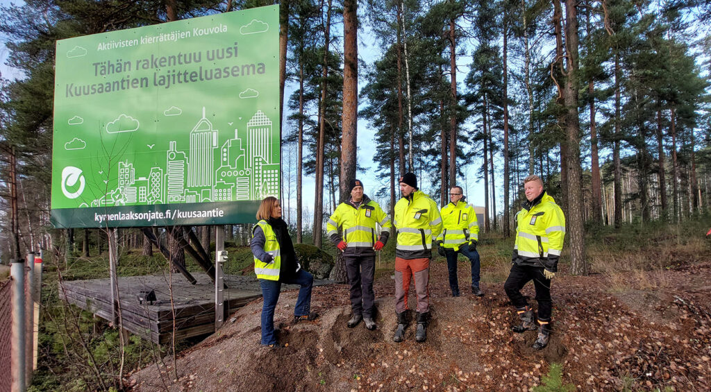 Kuusaantien lajitteluaseman maanrakennustyöt käynnistyvät joulu­kuussa. Kuvassa vasemmalta: Sanna Ahola (Kymenlaak­son Jäte), Jukka Tupala (Tupala-Yhtymä), Janne Lahtinen (Tupala-Yhtymä), Jani Rajamäki (Kymenlaakson Jäte) ja Markus Pessa (Tupala-Yhtymä)